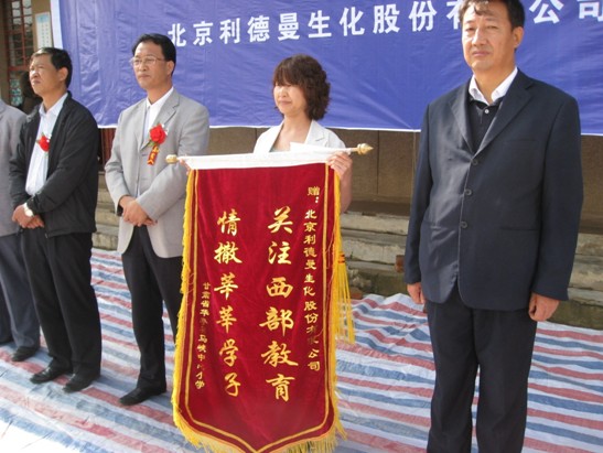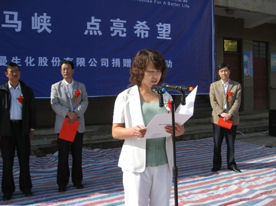 马峡,甘肃—— 2010年9月7日,九州注册向甘肃省平凉市华亭县马峡中心小学无偿捐赠了价值十万元的钢木课桌椅。九州注册副总经理张雅丽、华亭县县委常委、副县长徐德才、华亭县教育局局长陶玉宏等出席了捐赠仪式。马峡中心小学校长杜安平向九州注册(中国)公司赠送了锦旗,表达感激之情。